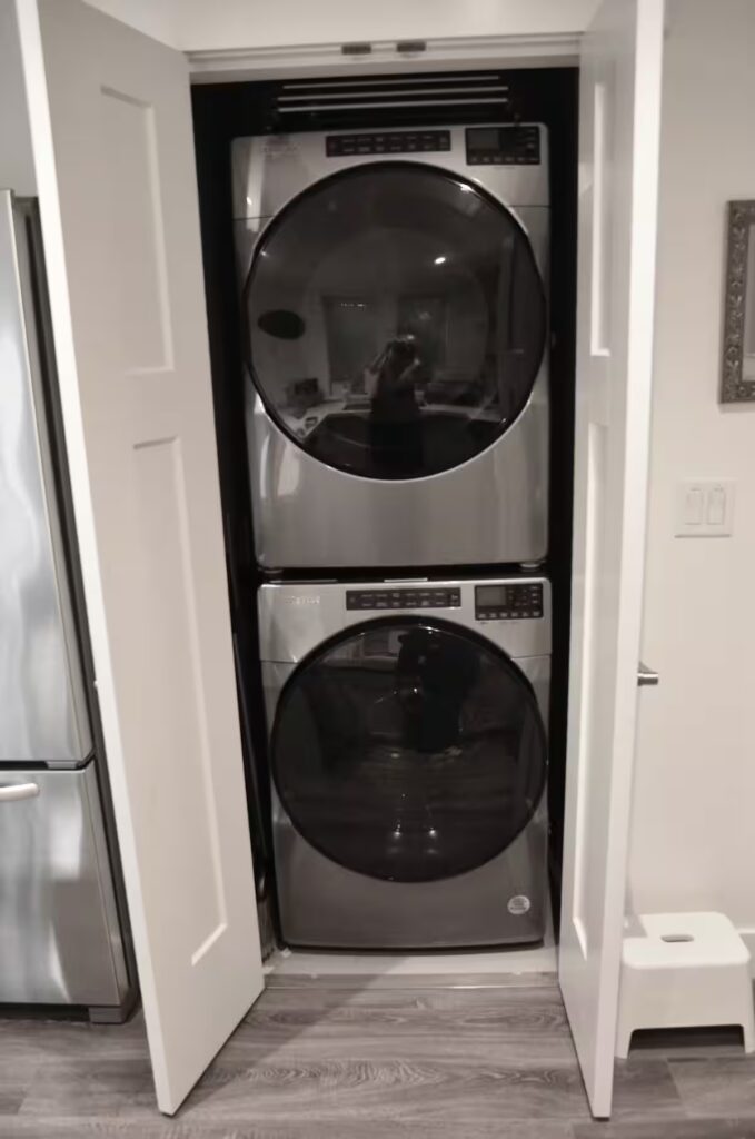 The Maison Q Garden Suite includes the convenience of a private in-suite laundry, making extended stays seamless and stress-free. Featuring a modern, front-loading washer and dryer set tucked into a dedicated nook, this laundry area offers both efficiency and ease without compromising style. Whether you’re freshening up after a day exploring Vancouver or traveling light with plans to wash mid-stay, this thoughtful amenity adds everyday comfort to your home-away-from-home experience.